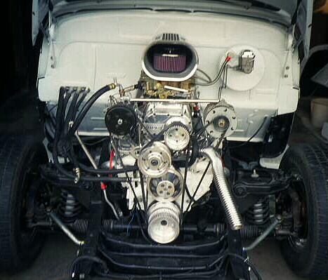 355 CID, 4-Bolt Main, Balanced, Milled, Align Bored Crank Journals, 5.7 Rods, Full Floating Keith Black Blower Pistons, Big Block Oil Pump "High Psi/High Volume", 10/10 Crankshaft, 76 CC Heads (Screw in Studs, Guide Plates), Comp Cams (Mega Blower Cam, Roller Rockers 1:5, Dual Springs and Push Rods), True Double Roller Timing Chain for Align Bored Motors, B&M 250 Power Charger Blower 10% Over-Driven, 2- 750 CFM Vac Sec Carburetors "Highly Modified", B&M Linkage & Fuel Lines, BDS Air Cleaner with K&N Air Filters, All MSD Igniton (MDS 6A Box, Tach Adapter, Blaster 3 Coil, 8.5 MM Wires and Ready to Run MSD Billet Electronic Distributor.